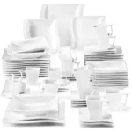 • IVORY WHITE DINNERWARE & SAFE FOR DAILY – Made of fine porcelain, our square white dinnerware sets are non-toxic and harmless, compatible with cold & hot food, and safe for daily meals. Featured with an ivory-white glossy finish, the wavy-shaped plate set brings style into every kitchen and is perfect for any casual or formal dining.